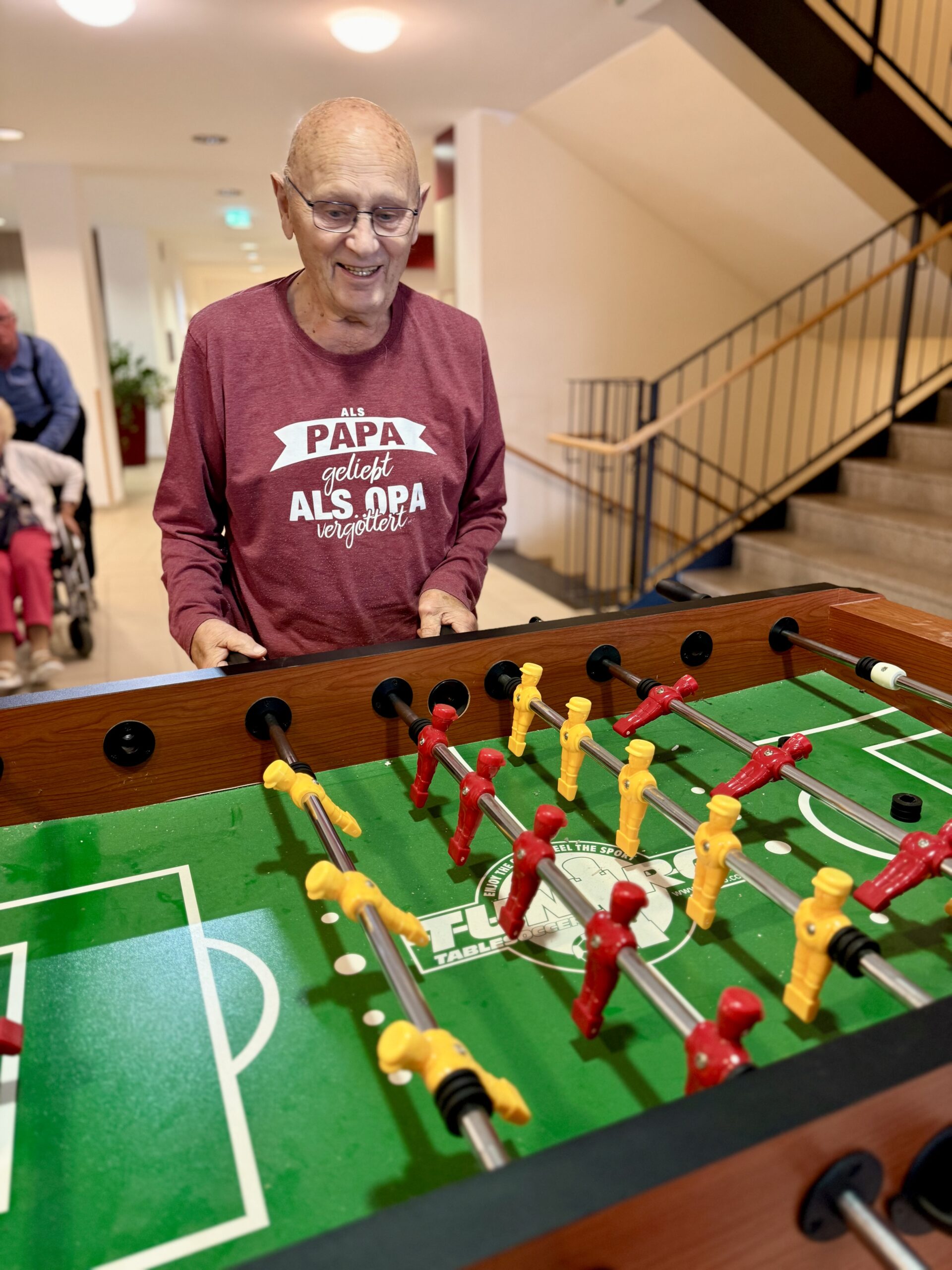 Kürzlich durften sich unsere Gäste in unserem SenVital über ein ganz besonderes Geschenk freuen: Das „Schwestern-Haus“ in Göttingen hat uns einen Tischkicker geschenkt – und die Freude war riesig! Schon beim ersten Anblick wurde das neue Spielgerät begeistert in Beschlag genommen.